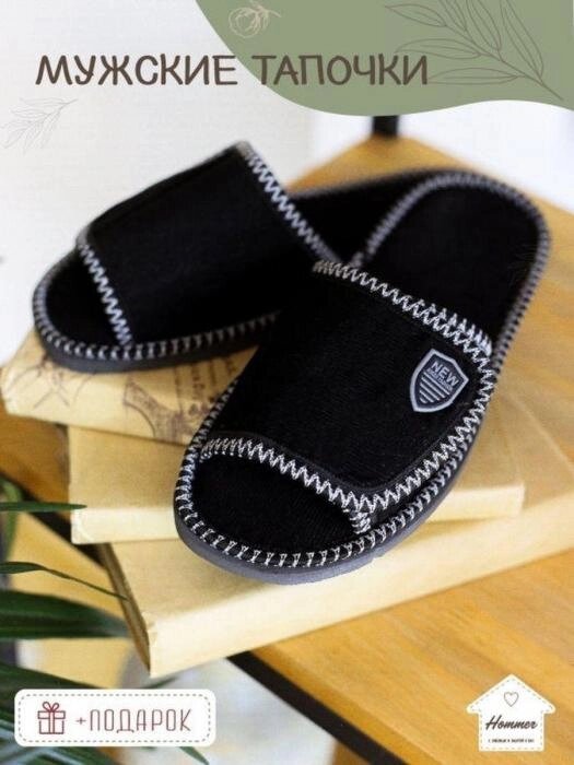 Тапочки домашние мужские черные теплые тапки открытые для дома