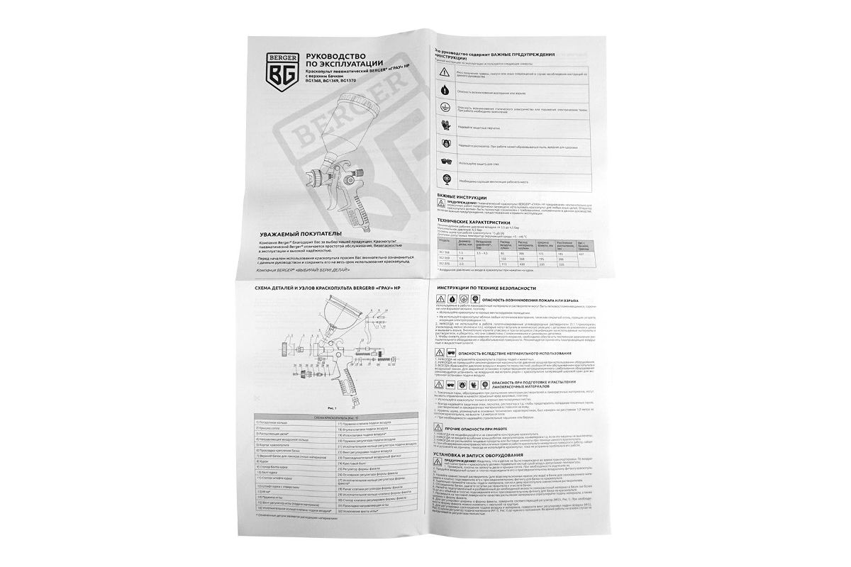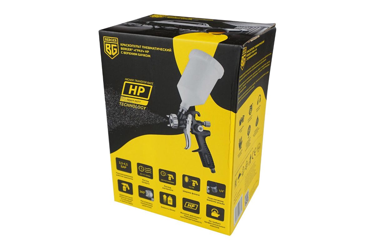 Краскопульт пневматический BERGER «ГРАУ» HP 1.5 мм верхний бачок BG1368