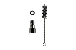 Комплектация: краскопульт, бачок, адаптер-соединитель с резьбы F1/4'' на быстросъём M1/4'', щётка для чистки, инструкция по эксплуатации.