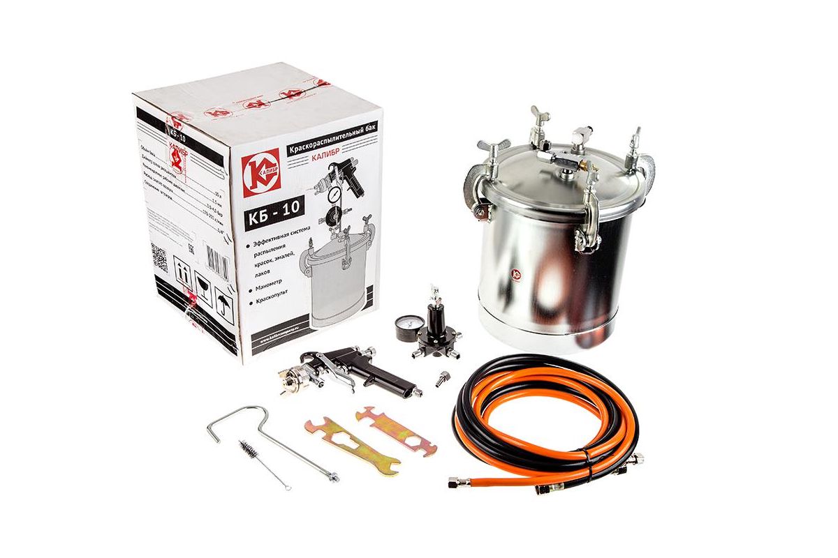 Краскопульт пневматический КАЛИБР КБ-10 HP, сопло: 1.5 мм, бак: 10 л Красконагнетательный бак с краскораспылителем ''Калибр КБ-10''