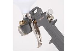 Расход воздуха: 200 л/мин; Объем бачка для краски: 0.6 л. верхний; Давление: 3.0-4.0 бар; Диаметр сопла: 1,5 мм; Ширина факела: 120-220 мм; Соединение: быстросъем; Вес: 0.8 кг;