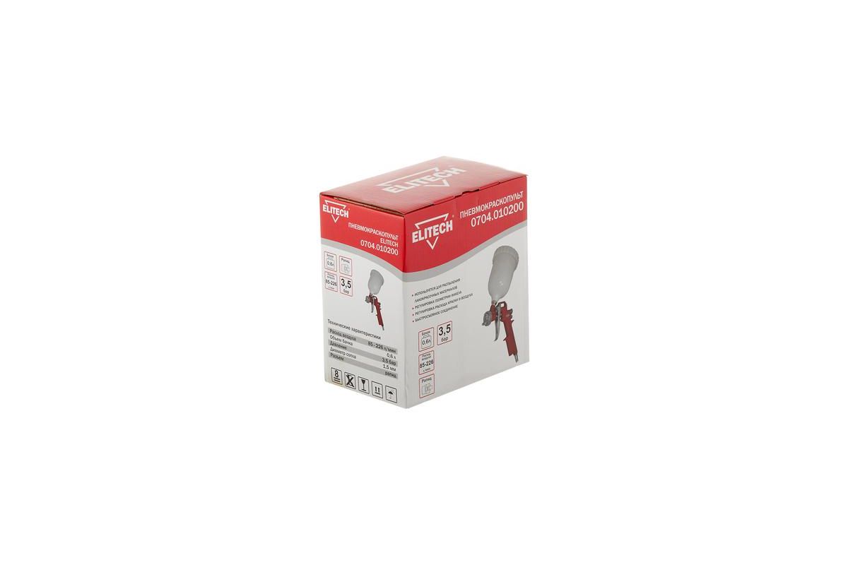 Краскопульт пневматический ELITECH 0704.010200 пневмокраскопульт 85-226л/мин 3.5бар сопло-1.5мм ве
