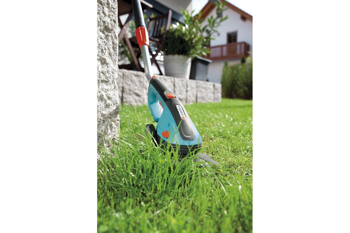 С аккумуляторными садовыми ножницами Gardena ClassicCut подравнять газон в труднодоступных местах можно быстро и без усилий, а благодаря включенной в комплект телескопической поворотной штанге для выполнения этой задачи пользователю не придется даже наклоняться, и вся запланированная работа будет выполнена не только быстро, но и с максимальным комфортом.