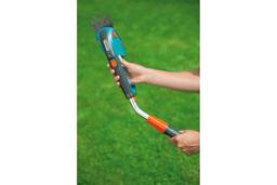 Для тех, кому мало преимуществ легких и удобных аккумуляторных садовых ножниц Gardena ClassicCut, компания Gardena выпустила эту же модель, но с впечатляющим дополнением – телескопической штангой. С такой штангой стричь траву стало еще удобнее, ведь теперь можно это делать, абсолютно не наклоняясь. Данная штанга невероятно удобна и каждый пользователь сможет легко настроить ее по своему желанию. Эта штанга с удобной рукояткой не только имеет регулируемую длину с минимальным значением в 85 сантиметров и максимальным значением в 120 сантиметров, но и может поворачиваться с шагом в 45° в каждую сторону. Если же штанга окажется не нужной, и пользователь захочет поработать садовыми ножницами Gardena ClassicCut вручную, то ее легко можно будет снять всего одним движением. Сделать это быстро и без инструментов позволяет прямое штекерное соединение штанги с ножницами. Без телескопической штанги эти садовые ножницы могут применяться и для стрижки садовых изгородей из лиственных кустарников наподобие самшита.