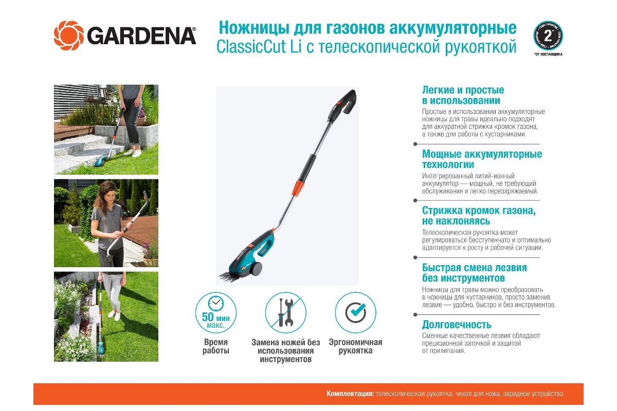 Ножницы GARDENA ClassicCut Li 09855-20 для травы аккумуляторные с телескопической рукояткой