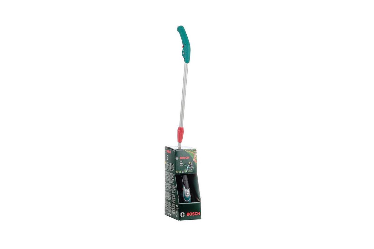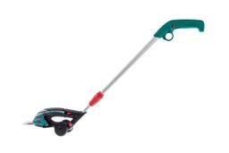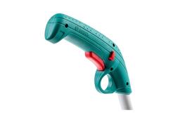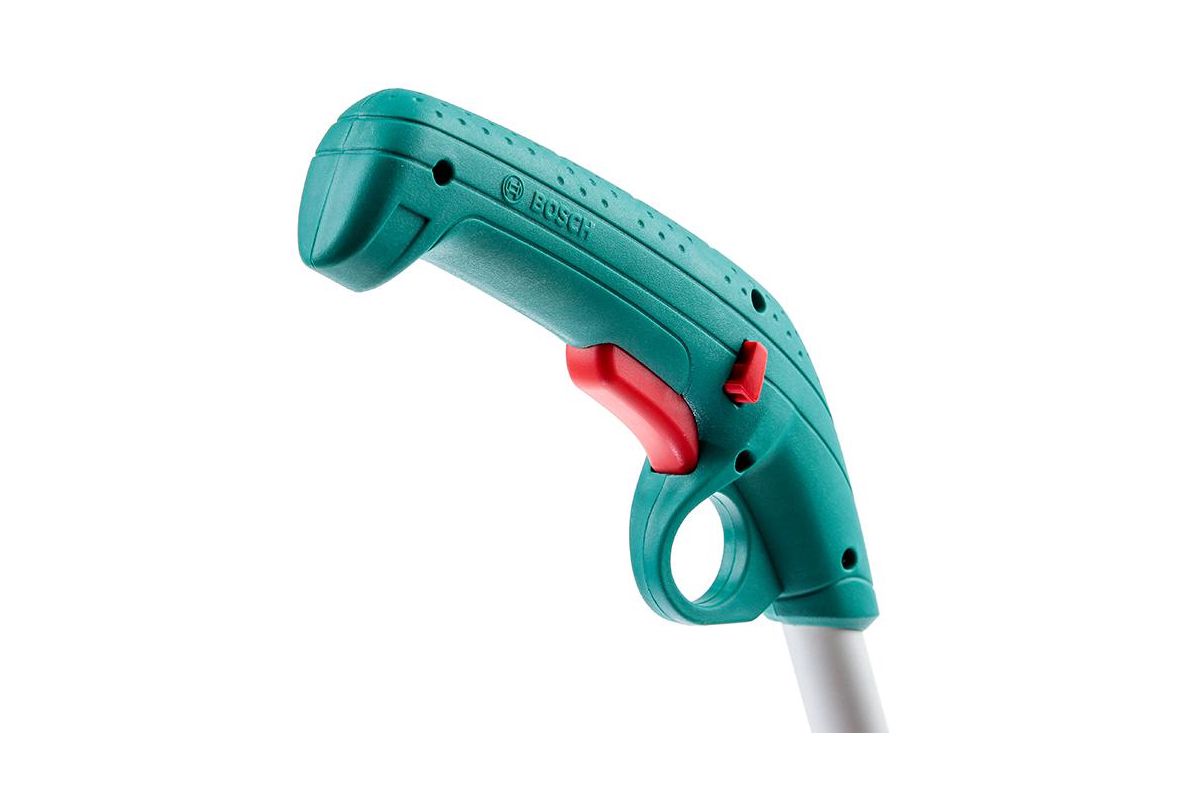 Для удобства стрижки травы в комплекте идёт телескопическая ручка с колёсиками. Установите на неё ножницы и стригите траву, не нагибаясь – кнопки включения продублированы на ручку штанги.