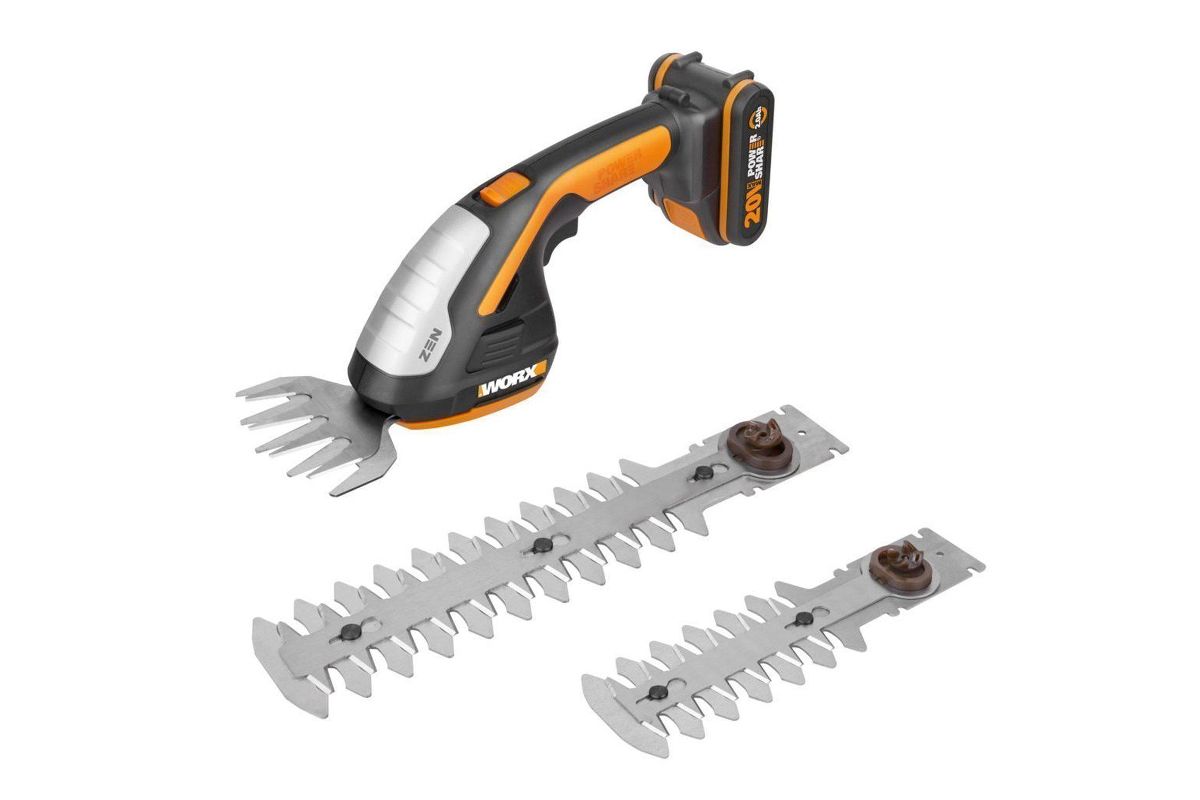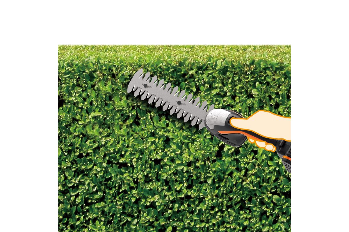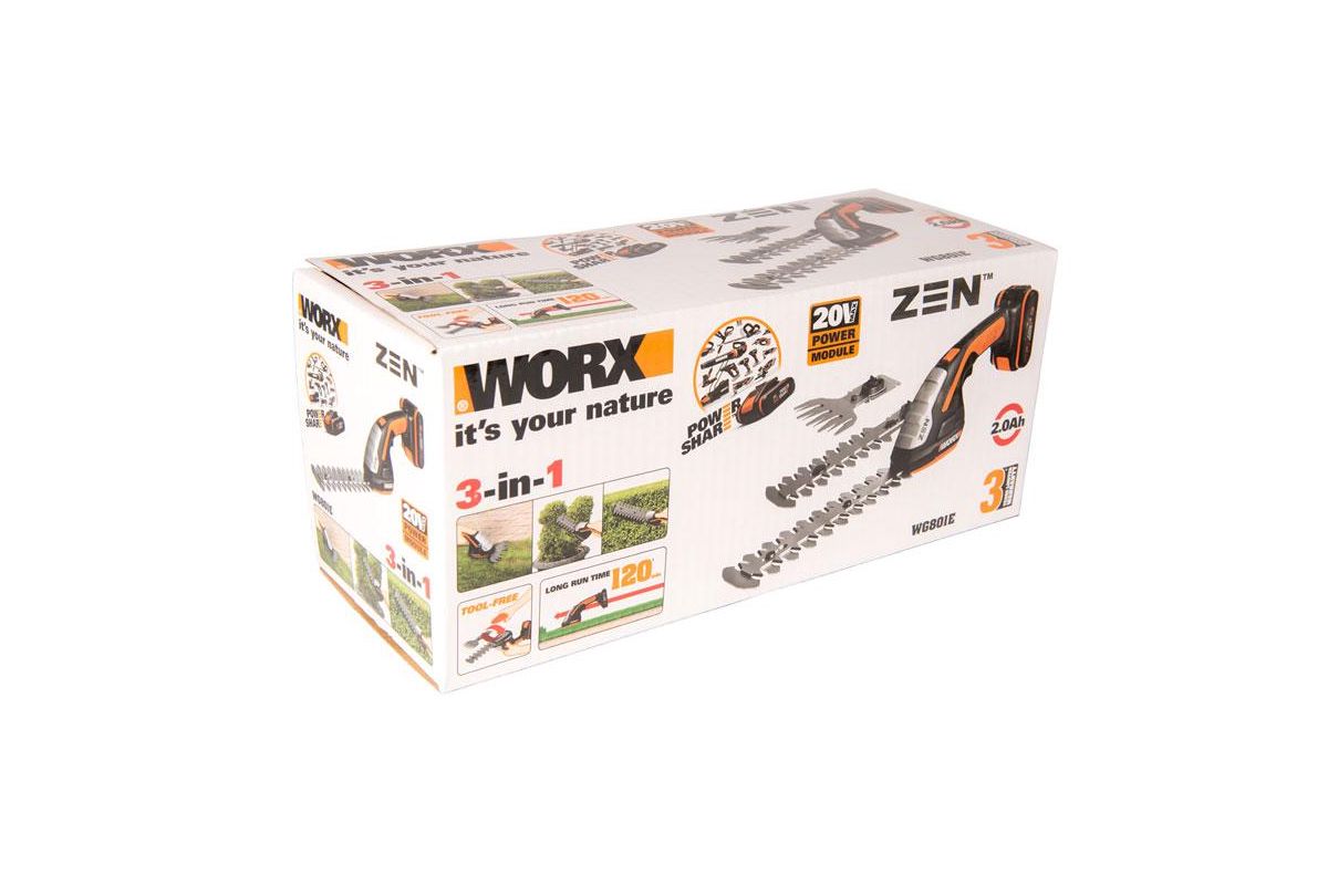 WORX WG801E – универсальные электрические ножницы 3 в 1. Подойдут для подравнивания кромки газонов, придания формы и стрижки кустарников. Работают от аккумулятора 20 В. Шаг полотна 8 мм. Пригодятся для ухода за садом.