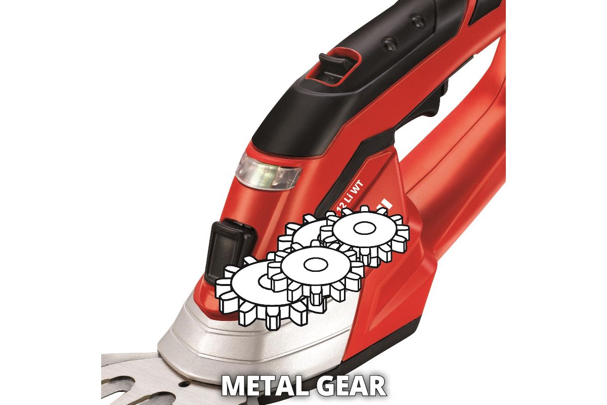 Ножницы-кусторез аккумуляторные Einhell GC-CG 12 Li WT – это практичный и компактный инструмент, превращающий стрижку травы и кустарника в детскую забаву. Выключатель с защитой от непреднамеренного пуска делает работу с инструментом безопасной. Прочный металлический редуктор обеспечивает надежную передачу крутящего момента двигателя на ножи.