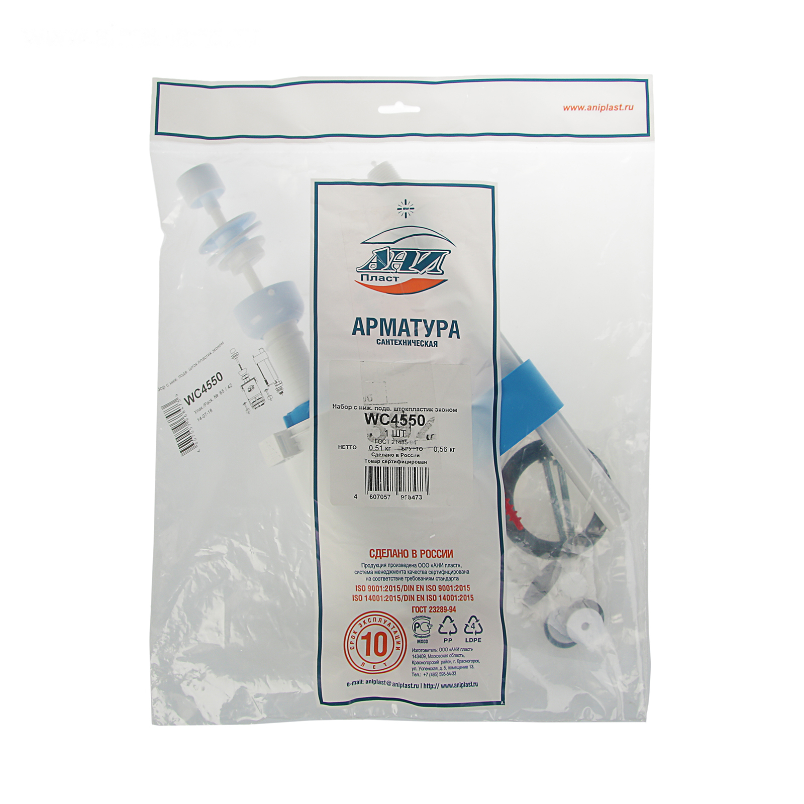 Арматура для смывных бачков "АНИ Пласт" WC4550 Эконом, с нижней подводкой 1/2", шток хром
