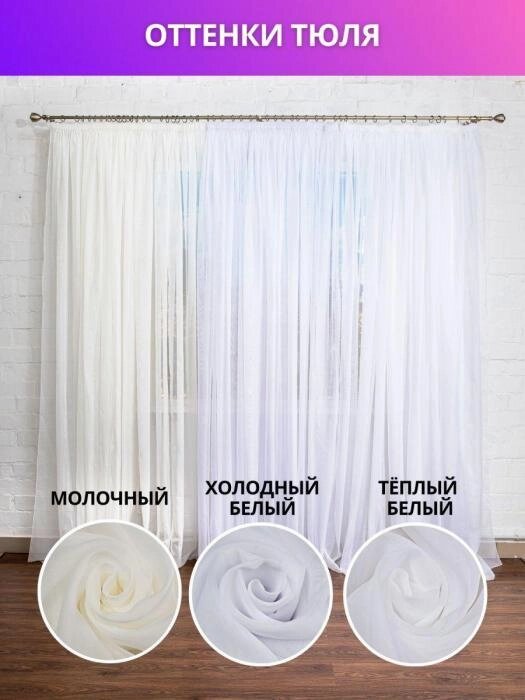Тюль в гостиную зал спальню детскую комнату 300х250 белая вуаль занавеска готовая для спальни зала кухни