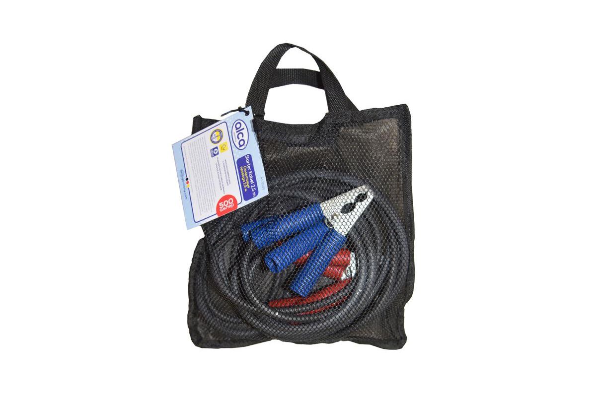 Провода вспомогательного пуска 500A 2,5 м. 100% медь в сумке. Морозоустойчевый кабель с резиновой изоляцией. Провода надежно запрессованы в зажимах. Концы проводов луженые. Рабочая температура до — 50 градусов. Предназначены для запуска автомобиля с разряженной АКБ при любых погодных условиях. Материал: Металл, пластик, резина. Вес: 0,75 кг. ALCA