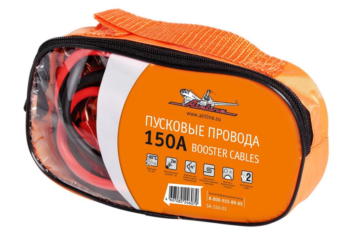 Провода прикуривания AIRLINE 150A имеют специальные крокодилы, которые позволяют дотянутся до аккумулятора в труднодоступных местах автомобиля, а также запускать снегоходы и мотоциклы с разряженной батареей. Благодаря широкому углу захвата, провода с легкостью крепятся на любой тип клемм аккумулятора.