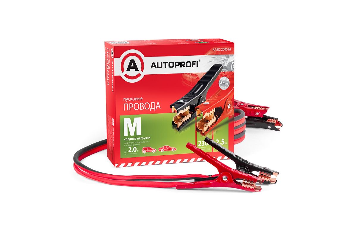 Пусковые провода Autoprofi сделаны по американскому стандарту SAE J1494. Это значит, что падение напряжение ни при каких условиях не превышает 2,5 В. Ручки пусковых проводов не нагреваются до уровня, способного навредить человеку (не выше 660С за 10 сек.). Технологически это достигается использованием проводов из толстой алюминиевой жилы с медным напылением, а также надежной термопластовой изоляцией.