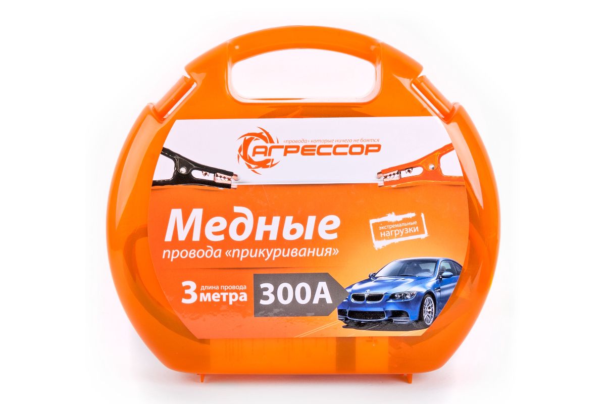 Провода пусковые ''Агрессор'', 100% медь, 300 А, морозостойкие, длина 3 м., пластиковый кейс, 1/6