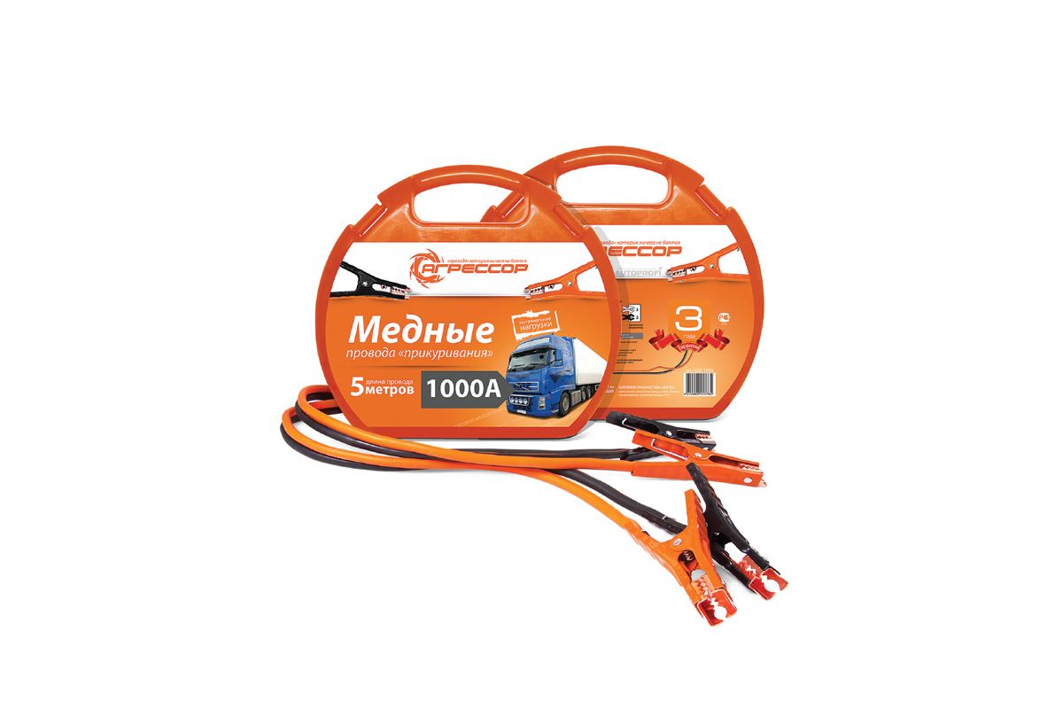 Провода пусковые ''Агрессор'', 100% медь, 1000 А, морозостойкие, длина 5 м., пластиковый кейс, 1/2