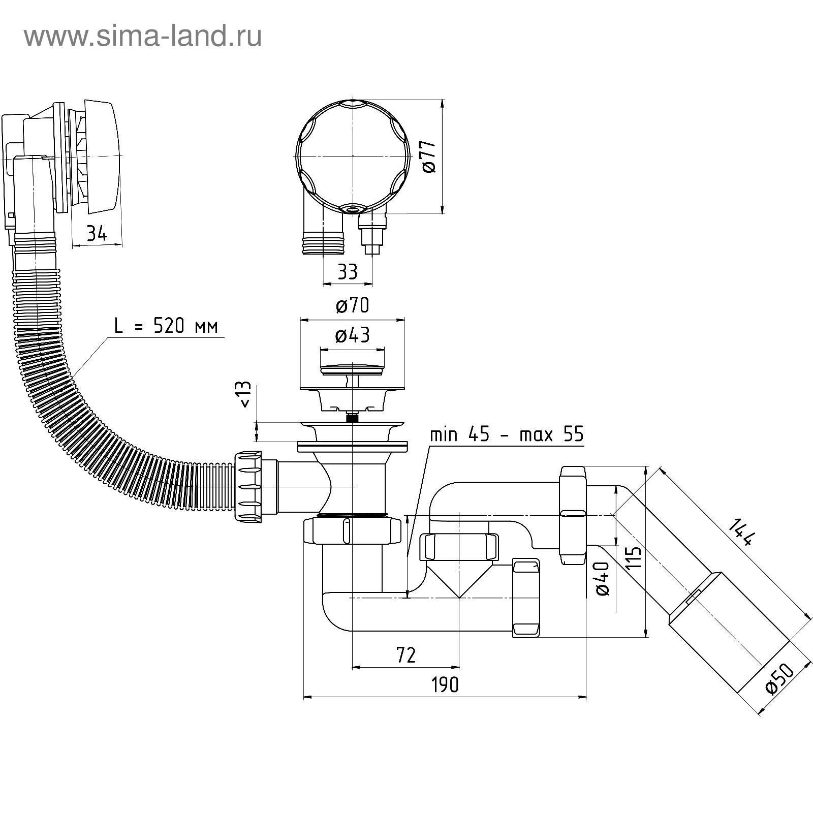 Автослив "АНИ Пласт" EM421, 520 мм, регулируемый, цвет хром