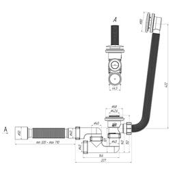 Сифон используется для ванны. Слив воды закрывается и открывается с помощью нажатия на кнопку выпуска.