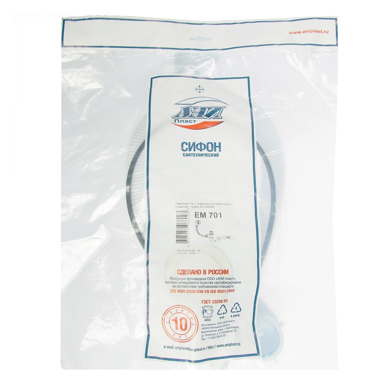 Сифон для ванны "АНИ Пласт" ЕМ701, 1 1/2" х 40 мм, с гофротрубой 50 мм, полуавтомат