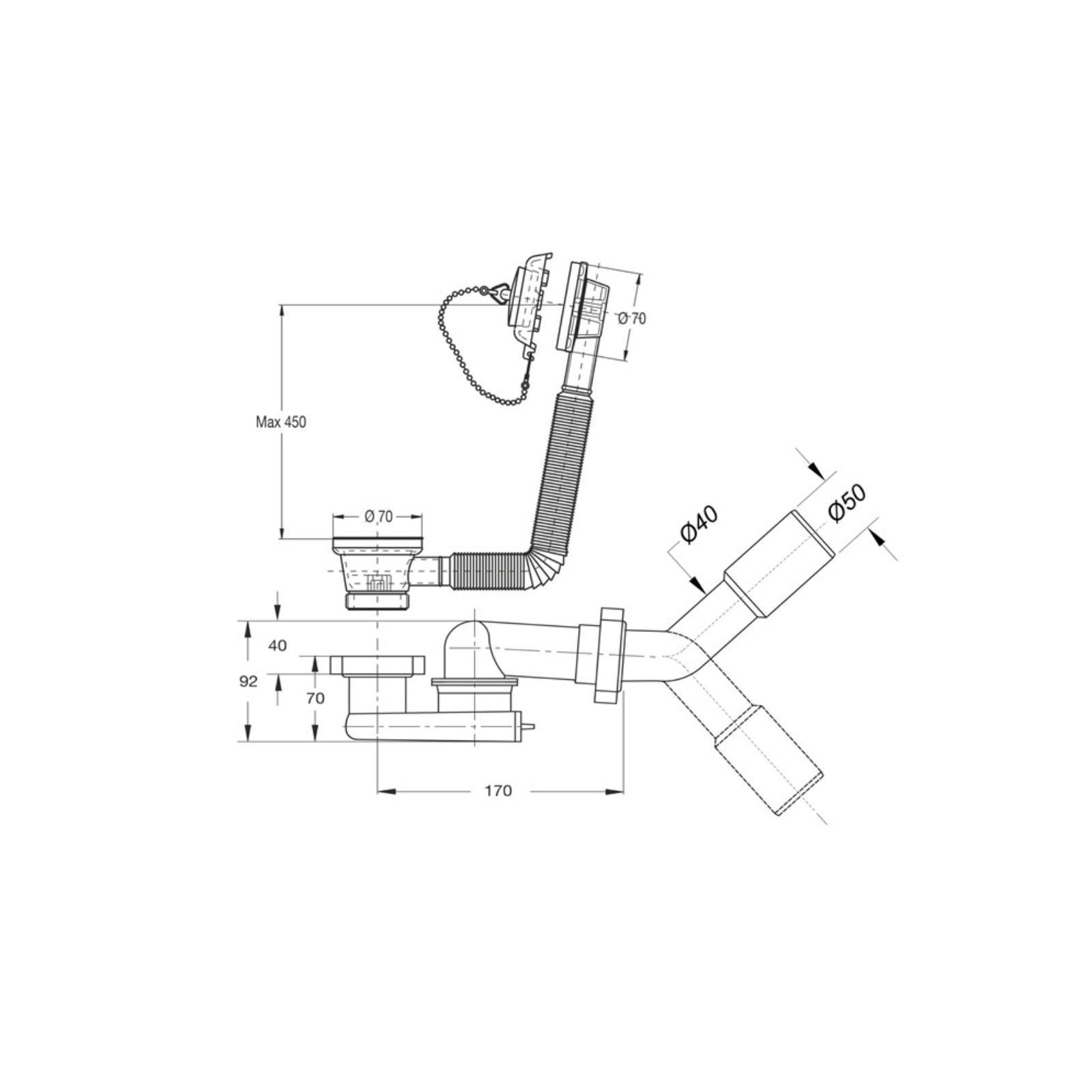 Сифон для ванны BONOMINI 4147WX45B0WZ, гофра 65 мм, d=52 мм, пластик-металл