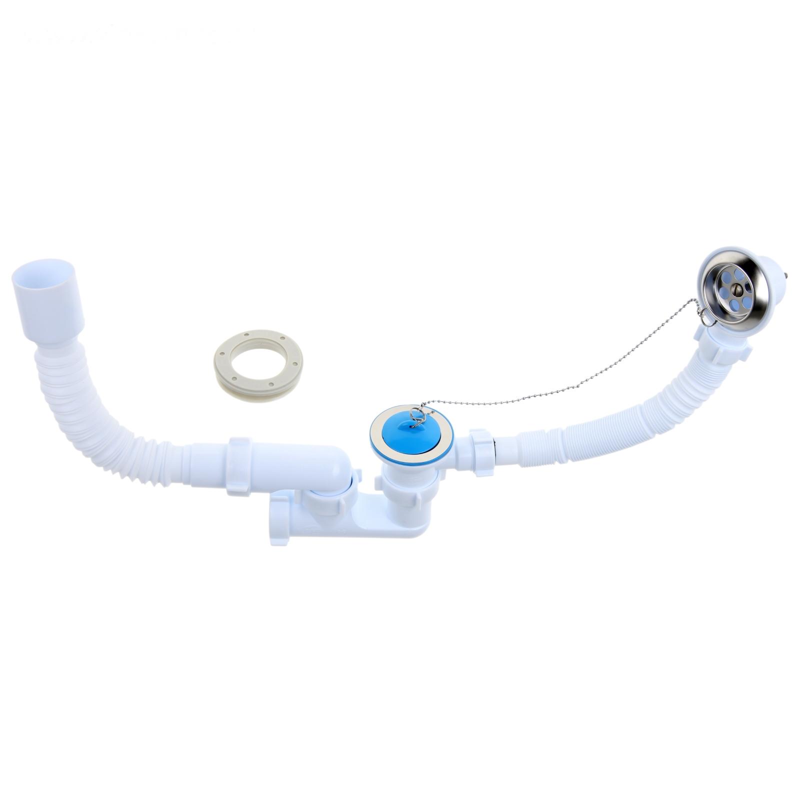 Сифон для ванны "АНИ Пласт" E255, регулируемый с выпуском, перелив 1 1/2", гибкая труба