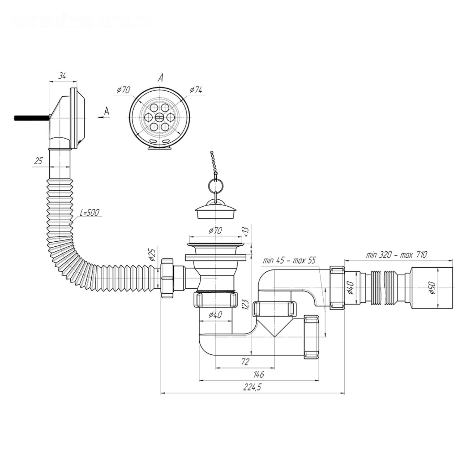 Гофрированный сифон для ванны с выпуском и переливом блокирует неприятные запахи из канализации. В трубе всегда есть небольшое количество воды, которая и предотвращает появление неприятных запахов. Регулируемая длина гофры позволяет установить раковину на нужном расстоянии от канализации. Качественный водопровод — залог чистоты в ванной комнате.