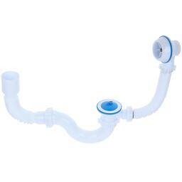 Если вы собираетесь менять элементы канализации и слив, идеальный вариант — комплект для ванны с гибкой трубой. Гофрированный сифон блокирует неприятные запахи из канализации. В трубе всегда есть небольшое количество воды, которая и предотвращает появление неприятных запахов. Регулируемая длина гофры позволяет установить раковину на нужном расстоянии от канализации.