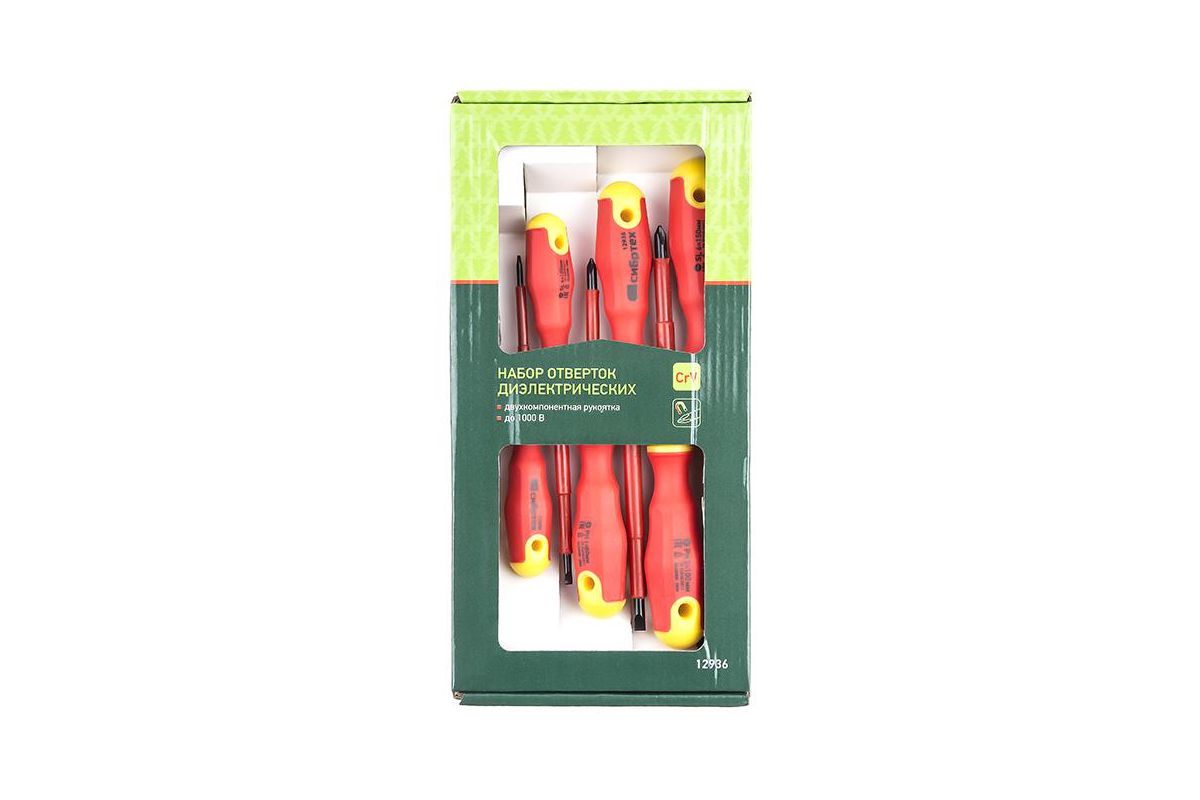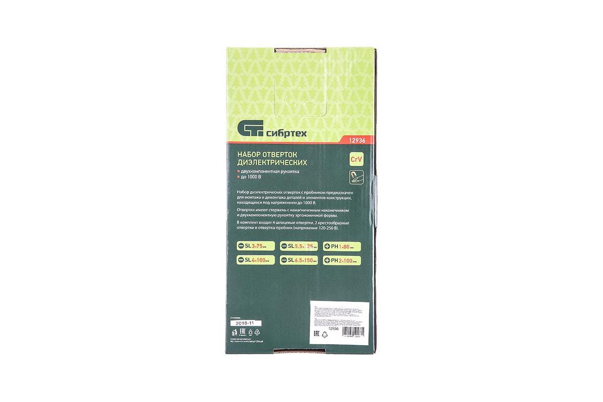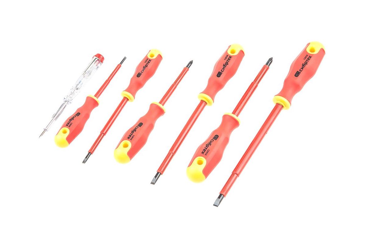 Набор отверток СИБРТЕХ 12936 диэлектрических до 1000в тестер crv двухкомпонентные рукоятки (7шт.)