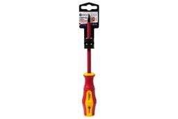 Ручной инструмент, применяющийся в работах с резьбовыми крепежами. Отвертка с диэлектрическим покрытием обеспечивает безопасную работу под напряжением. Для точной и быстрой работы стальной стержень оснащен магнитным наконечником. Спроектированная форма рукоятки предотвращает соскальзывания и удобно лежит в руке во время эксплуатации.