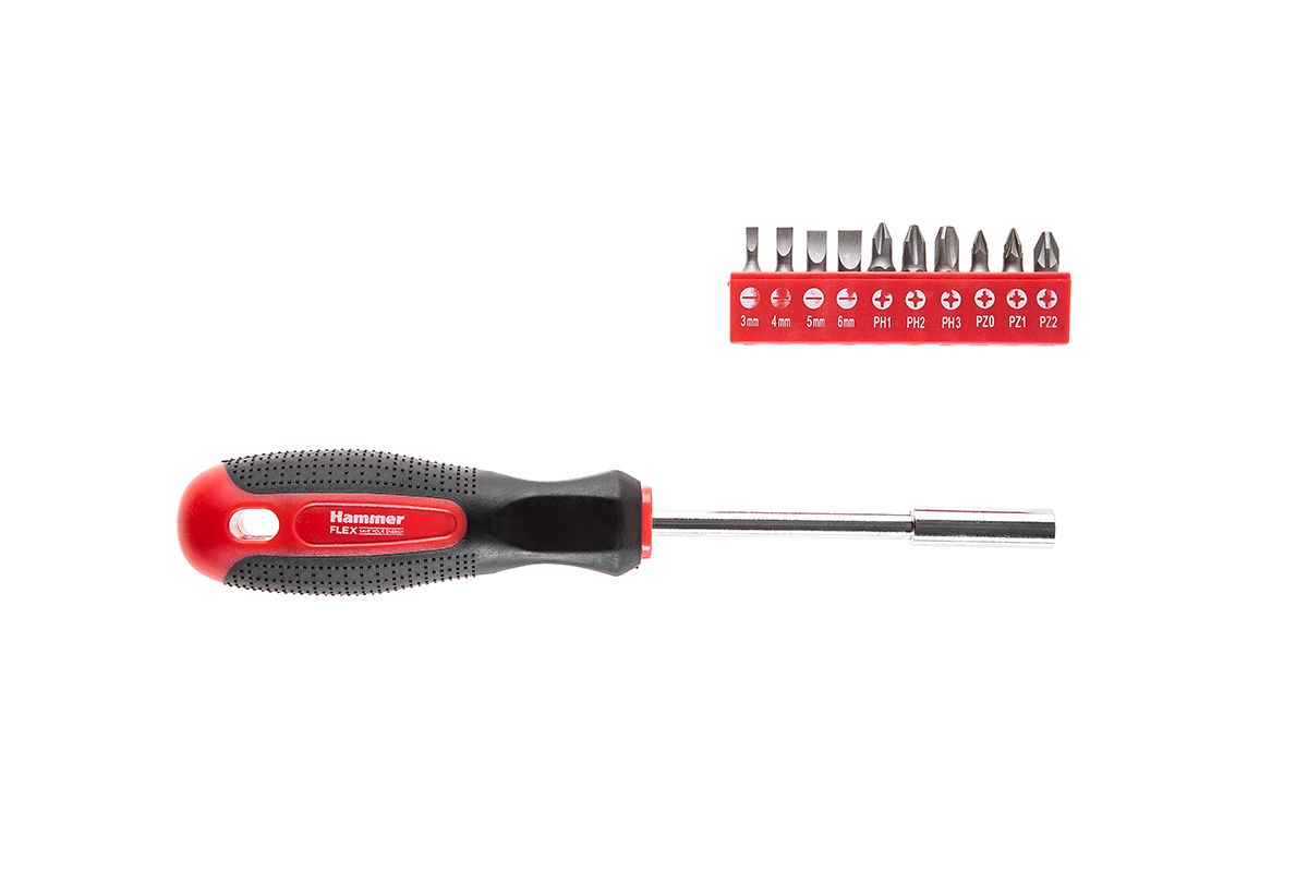 Отвертка Hammer Flex 601-036 с набором бит 11 предметов CRV