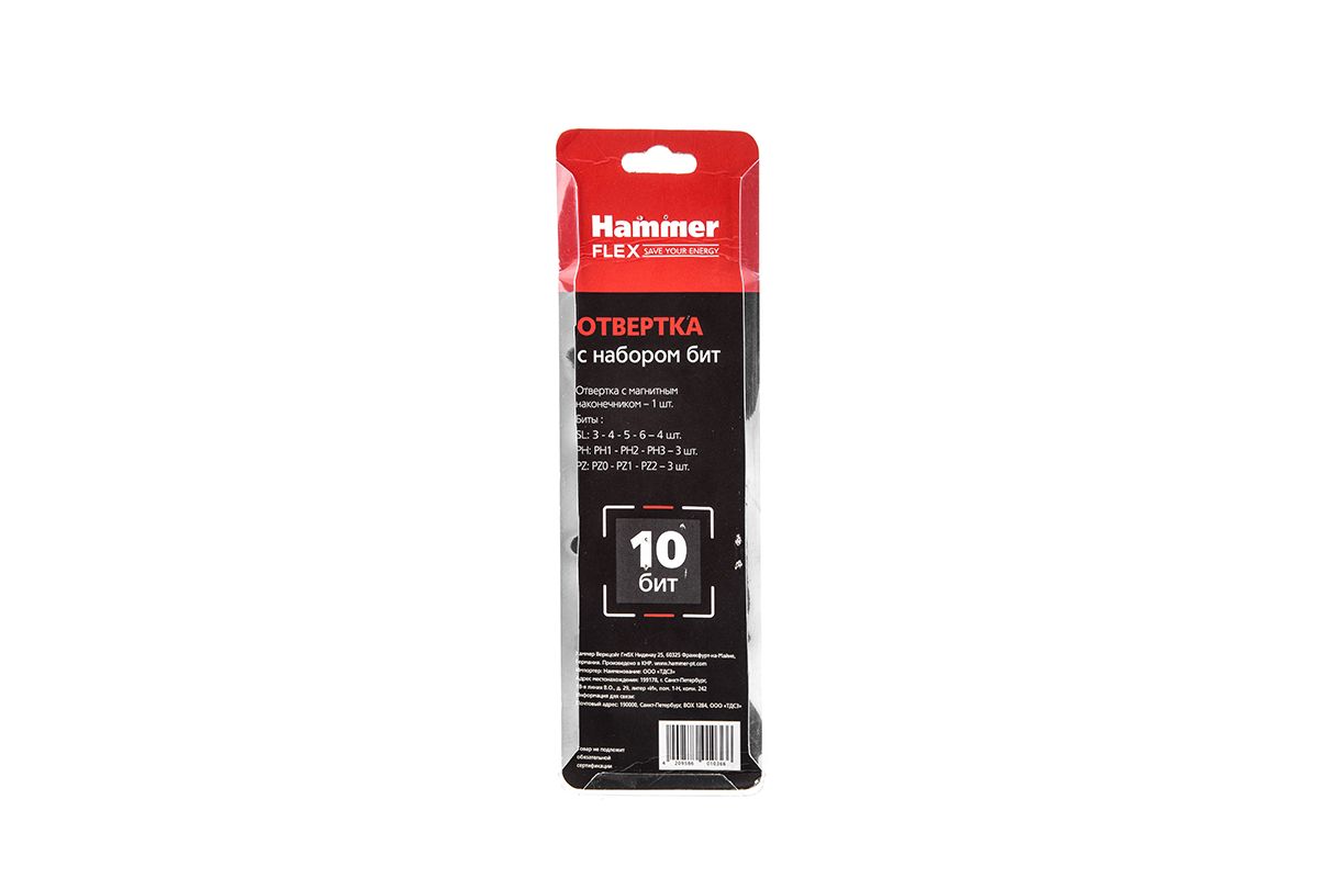 Отвертка HAMMER 601-036 с набором бит 11 предметов