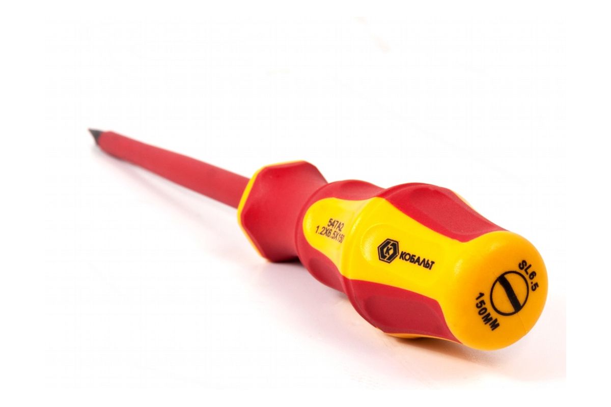 Отвертка КОБАЛЬТ 646-461 диэлектрическая Ultra Grip SL 6,5 х 150мм CR-V, двухкомп.рукоятка