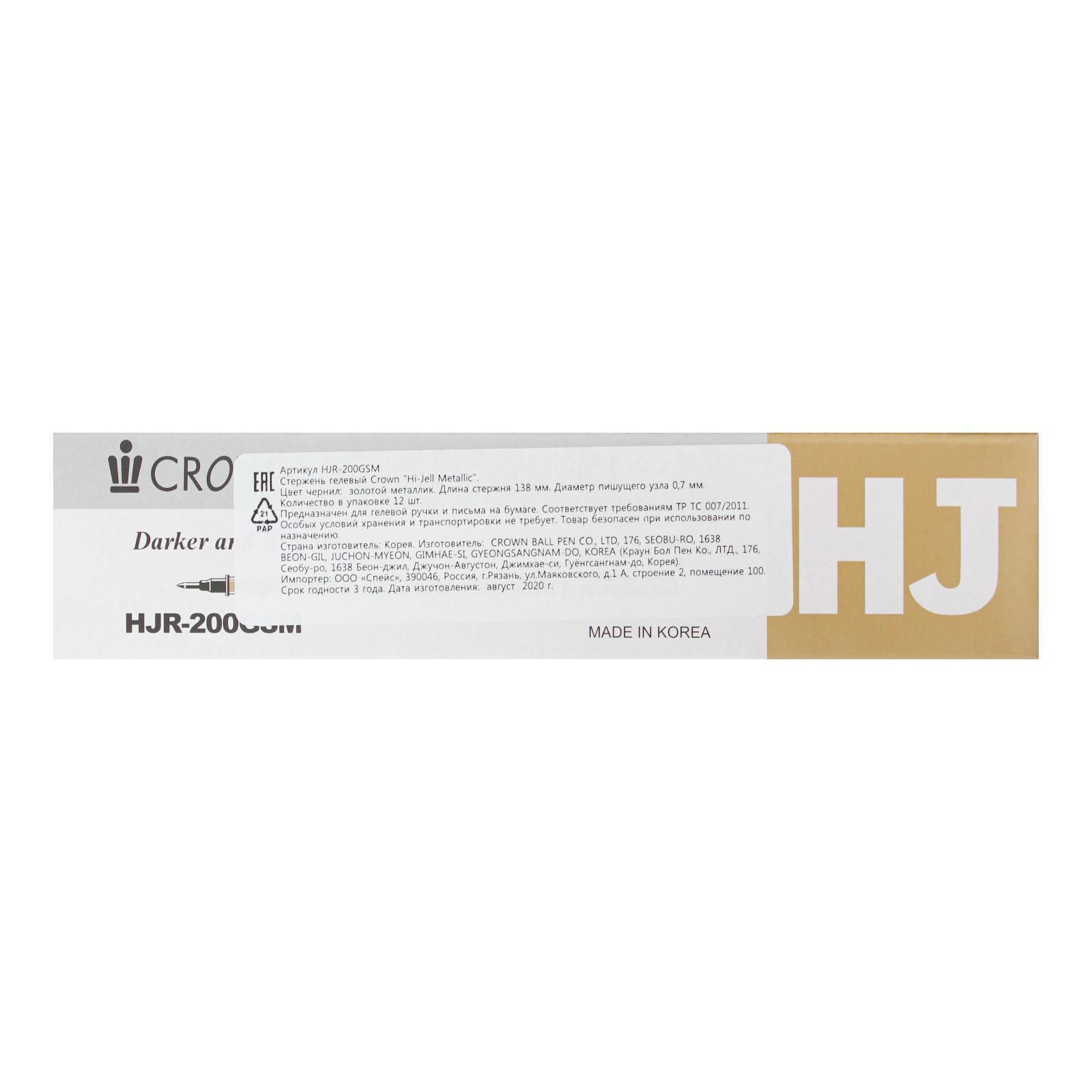Стержень гелевый 138мм Crown "Hi-Jell Metallic" 0,7мм, золото металлик HJR-200GSM