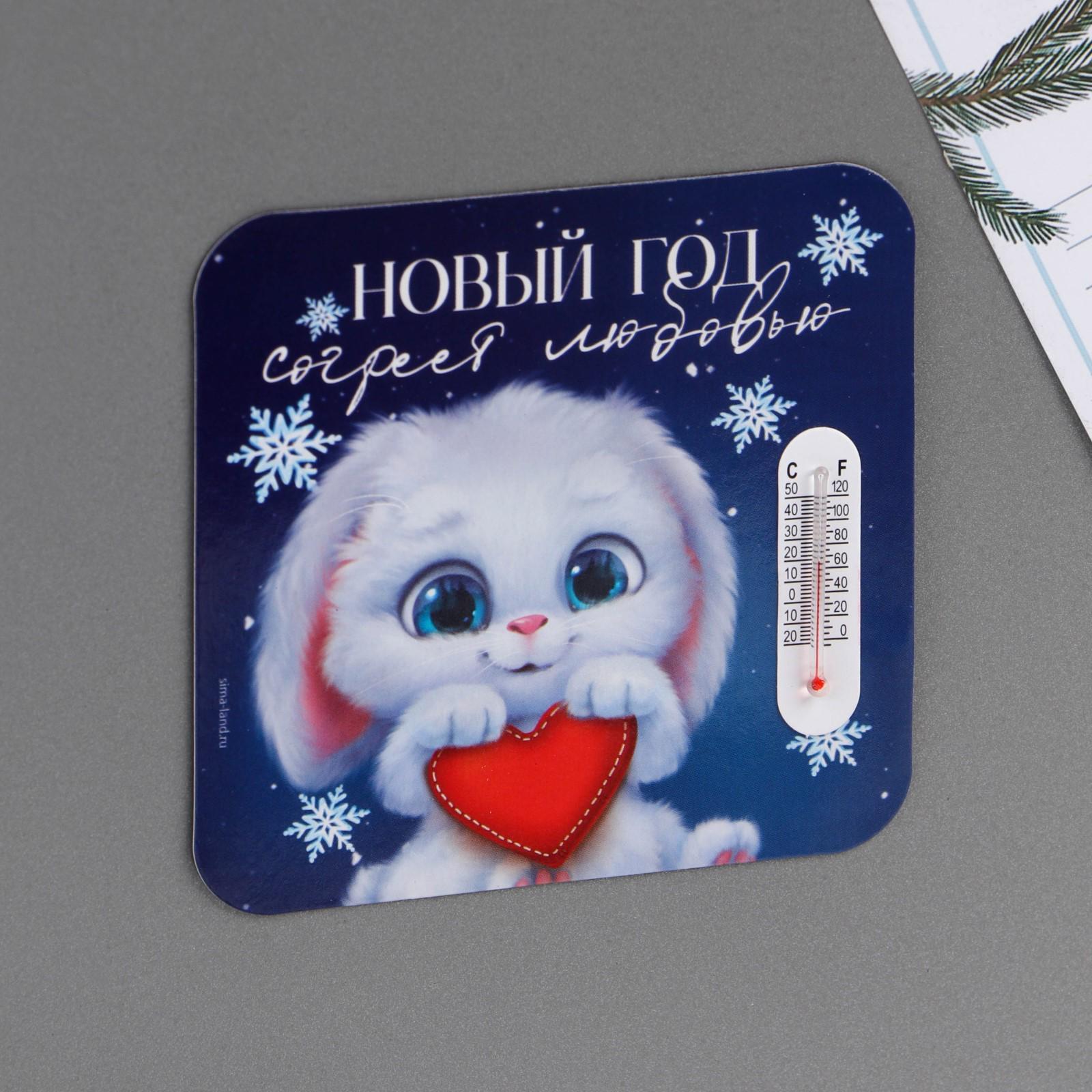Магнит с термометром «Новый год согреет любовью», 8 х 8 см