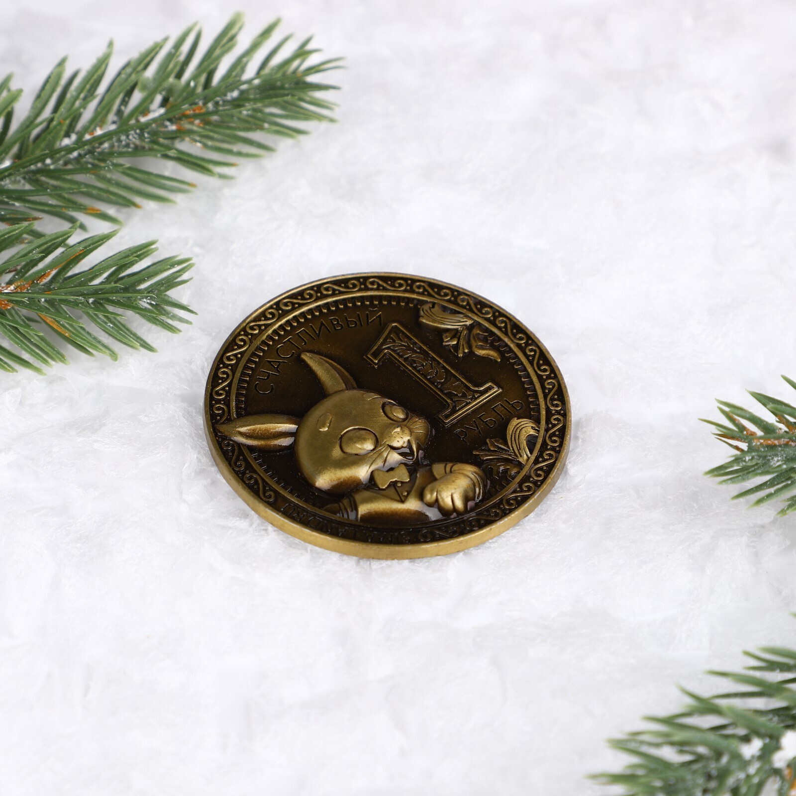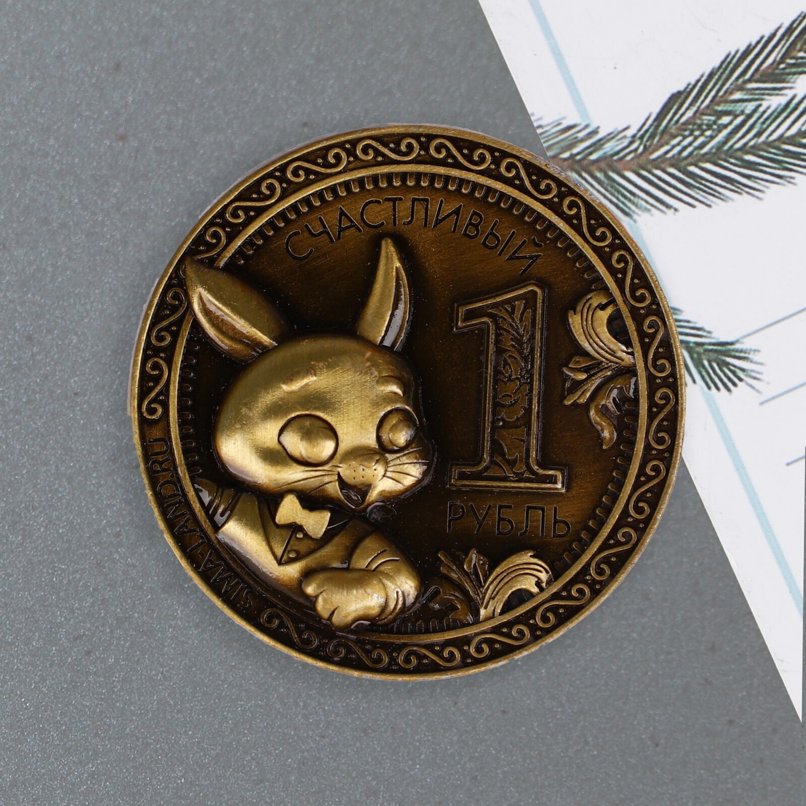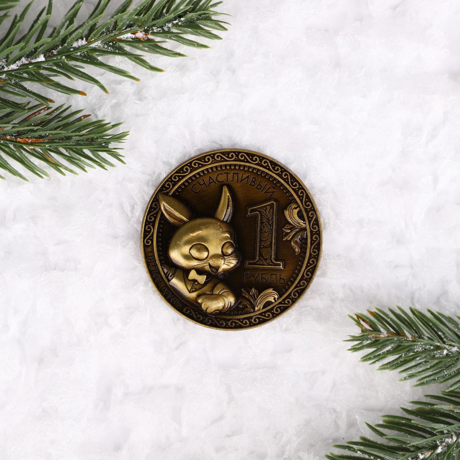 Металлический магнит «Счастливый рубль», диам. 5 см