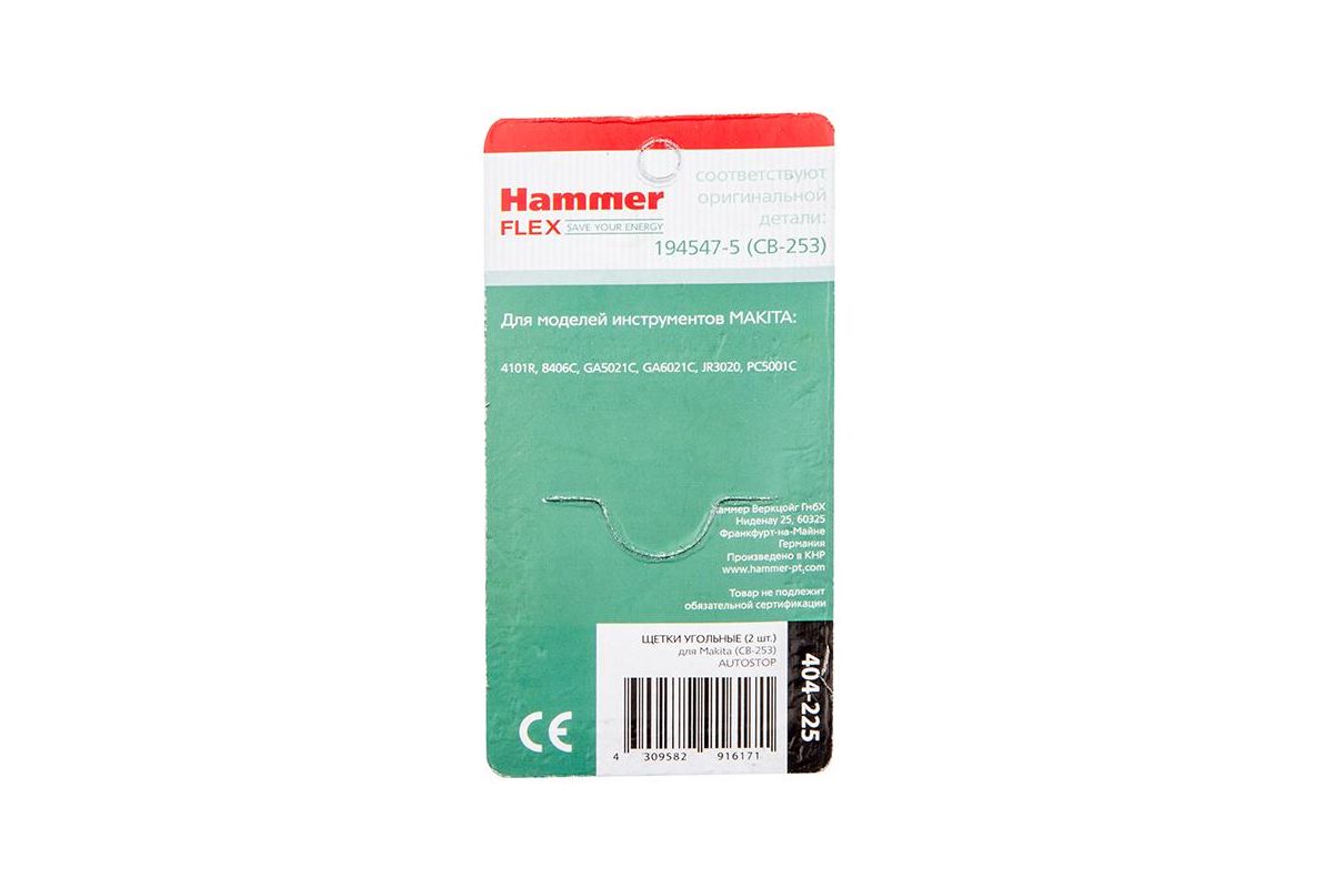 Щетки угольные HAMMER 404-225 (2шт.) для Makita(СВ-253) AUTOSTOP