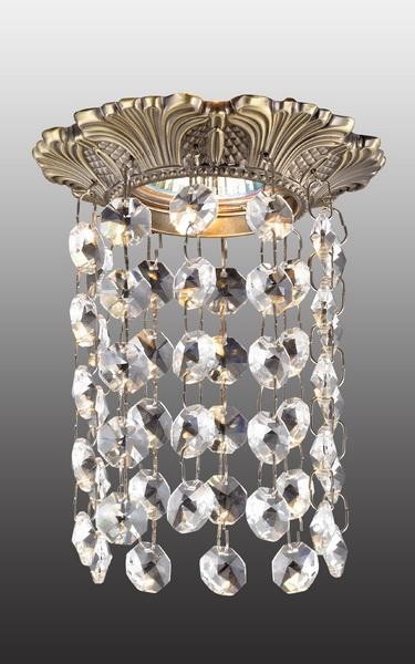 Основание светильника произведено из сплава цинка. Благодаря сравнительно высоким механическим и литейным качествам, изделия, выполненные из сплава цинка, отличаются высокой точностью деталей декора со сложной конфигурацией. Так же он обладает антикоррозийными свойствами. Декоративные подвески произведены из хрусталя. Он обладает высоким показателем плотности, прозрачности и блеска. Благодаря содержанию свинца (не менее 30%) и определённому подбору углов, образуемых гранями, изделия из хрусталя отличаются необыкновенно яркой, многоцветной игрой света, чарующей магией красоты, совершенства и роскоши. А так же, он обладают красивым звоном.