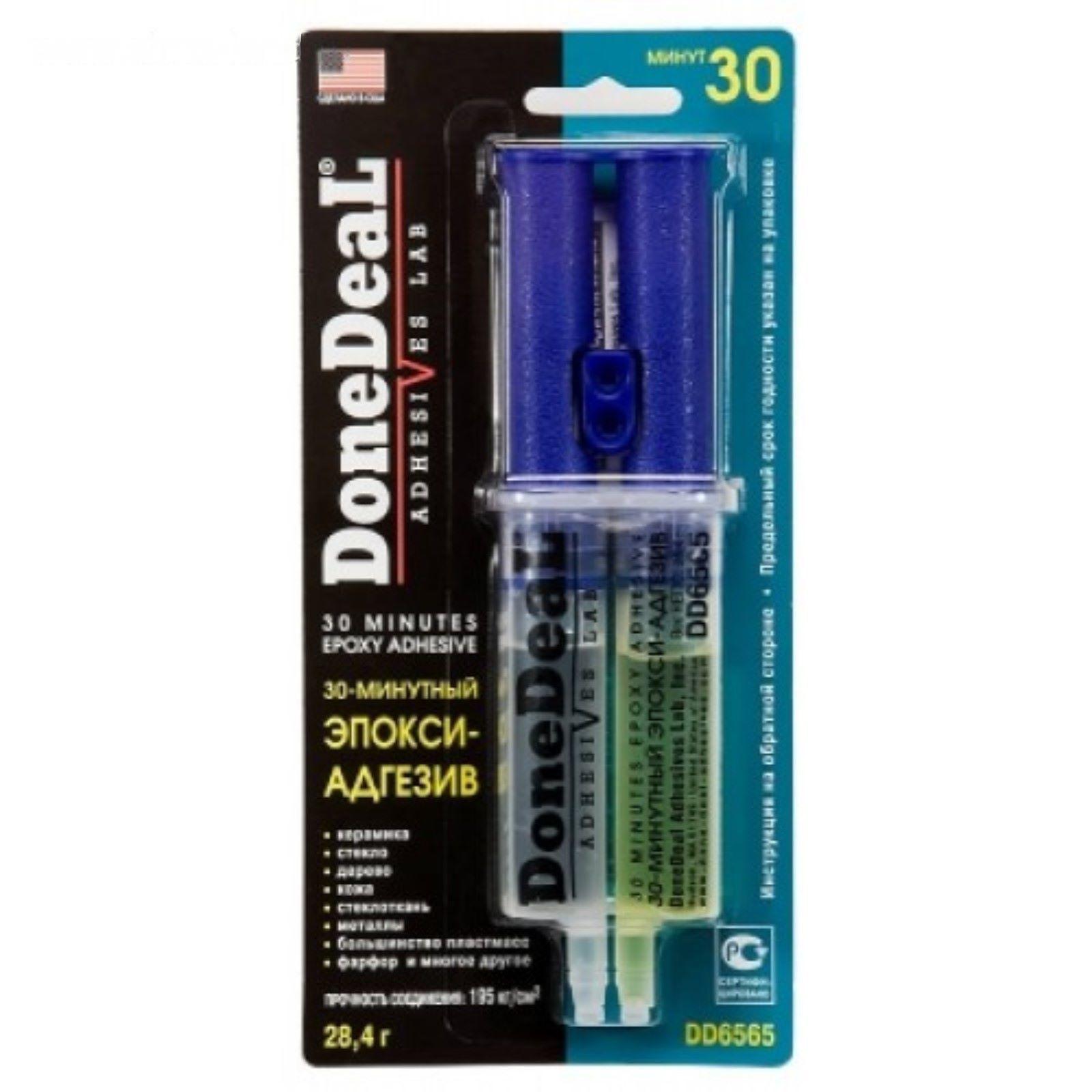 Клей эпоксидный DONE DEAL, шприц, 30-минутный, прозрачный, 28,4 г