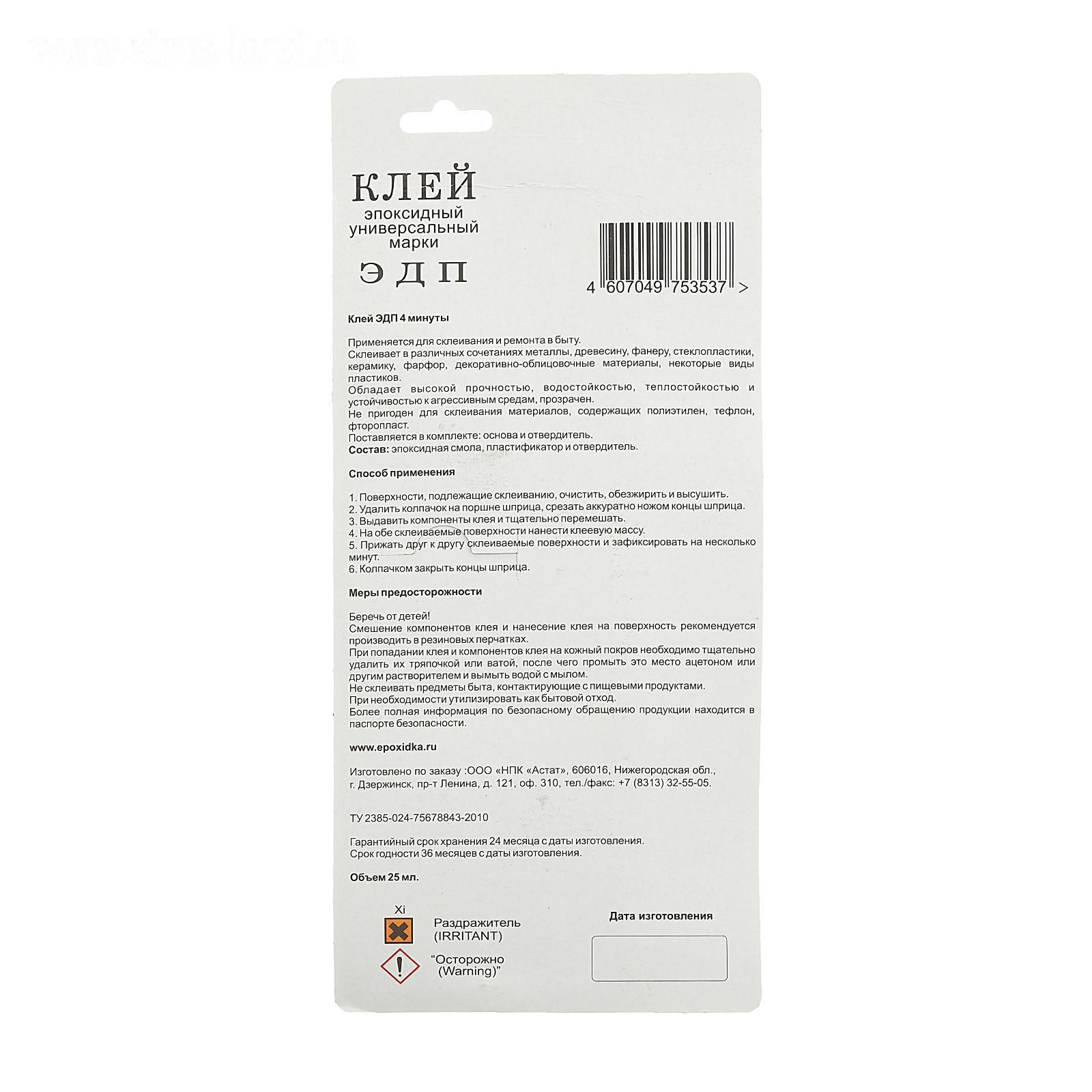 Клей эпоксидный ЭДП двухкомпонентный, шприц, 25 г