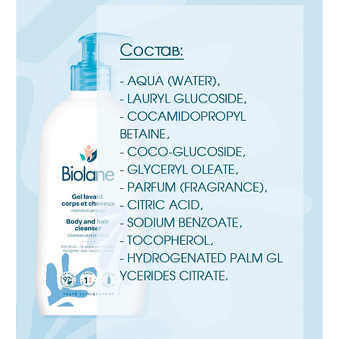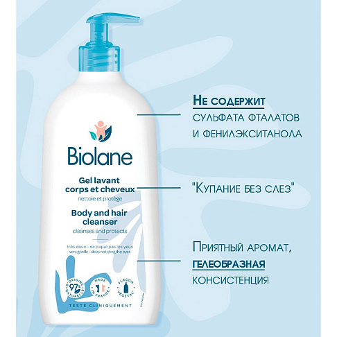 Гель для душа и шампунь 2в1 Biolane 350 мл