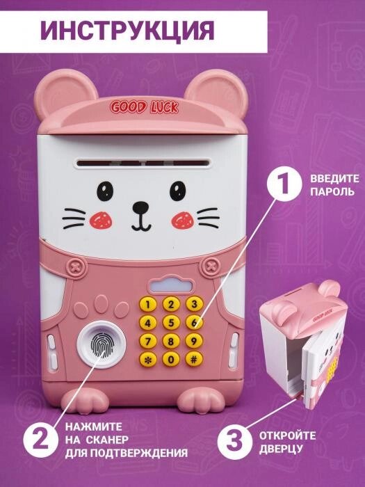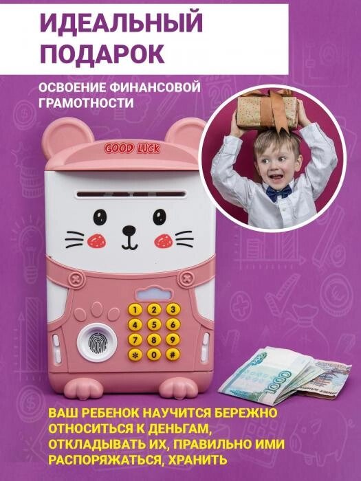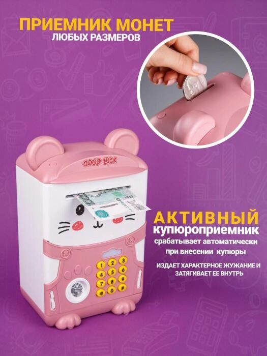 Детская копилка-сейф для денег детей девочек VS25 электронная игрушечный банкомат с купюроприемником