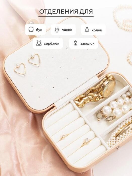 Шкатулка для украшений и колец сережек девочки с отделениями VS33 золотистая