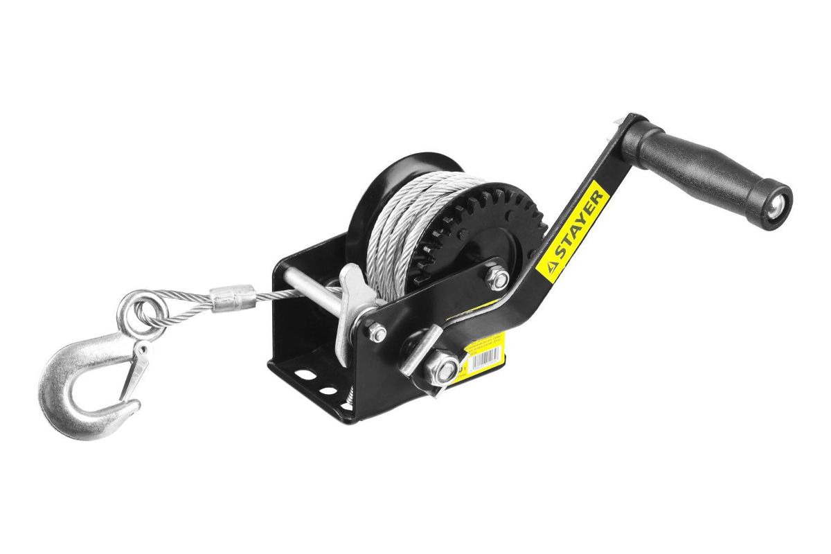 Лебедка механическая STAYER ''MASTER'' 43112-0.5 ручная барабанная тяговая тросовая 0.45т 8м