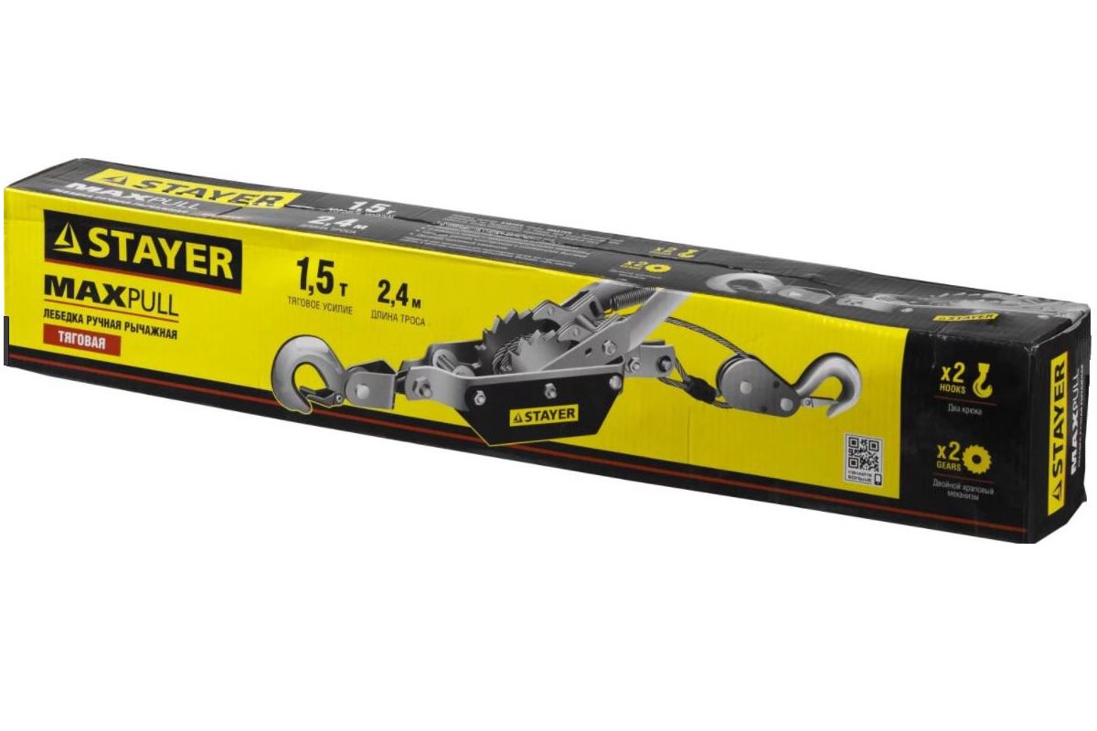 Лебедка механическая STAYER ''MAXPull'' 4310-1.5 рычажная тросовая 1.5т/2.4м Крюки изготовлены из специальной углеродистой стали и закалены