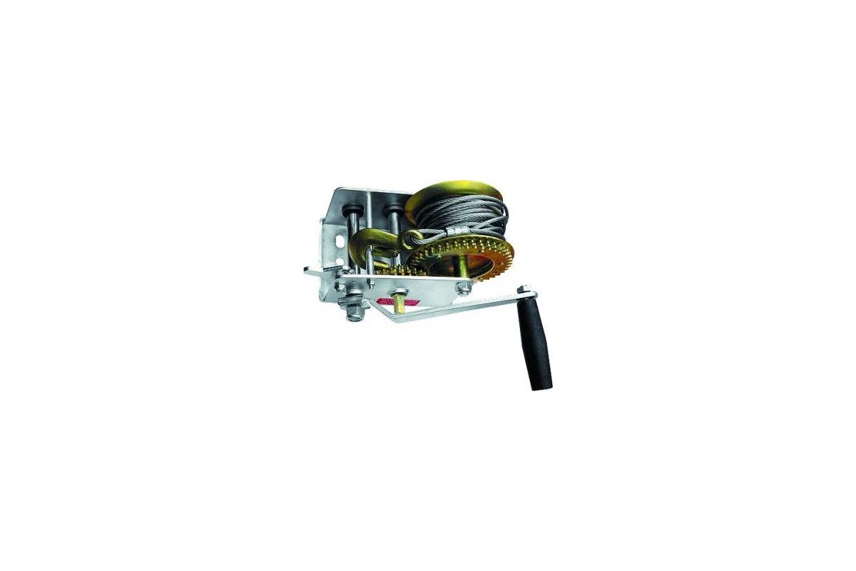 Шестерёнчатая лебедка имеет прочный стальной корпус и стальной шестеренчатый механизм, который приводится в движение вращением ручки. Предназначена только для горизонтального перемещения грузов. Используется при установке оборудования, такелажных и погрузочноразгрузочных работах. Лебедка особенно удобна при работах вне помещения, при отсутствии электричества. Запрещается использовать для подъёма грузов.