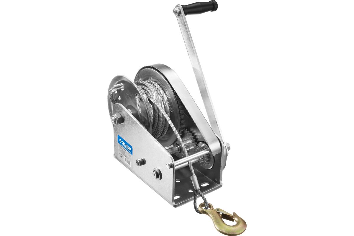 Лебедка механическая ЗУБР ''ПРОФЕССИОНАЛ'' 43117-1.3 ручная барабанная подъемная тросовая 1.3т 8м