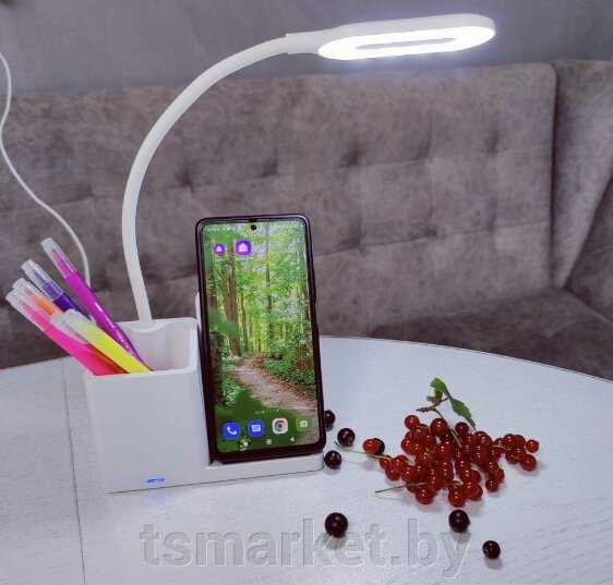 Гибкая настольная лампа - органайзер канцелярский Stark с функцией беспроводной зарядки для смартфона