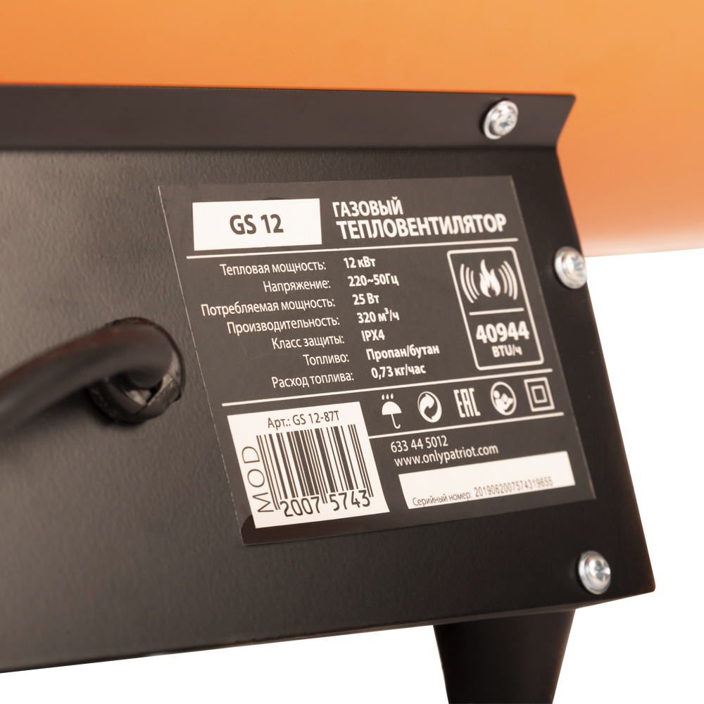 Нагреватель воздуха газовый PATRIOT GS 12 (12кВт,320м3/ч)