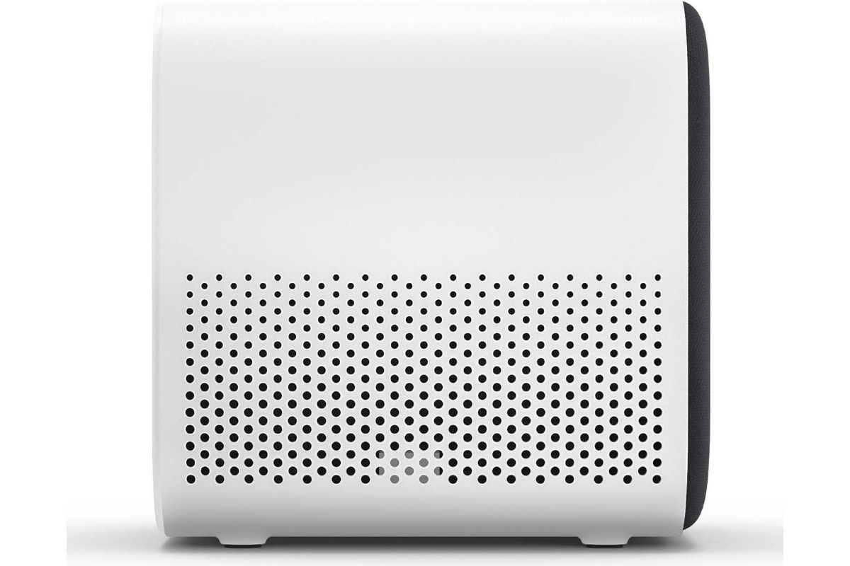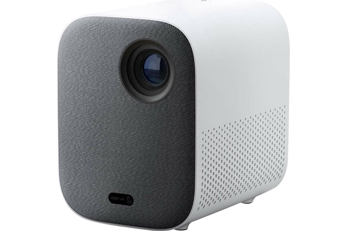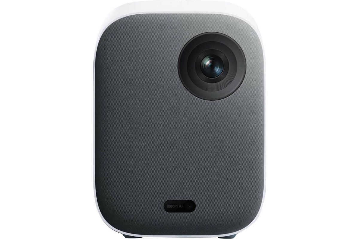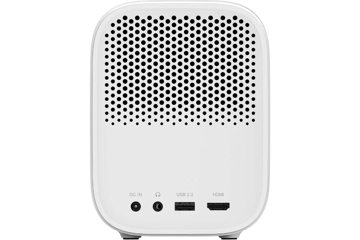 Mi Smart Projector 2 представляет собой компактный проектор белого цвета. В передней части он имеет тканевое покрытие, а остальная часть корпуса выполнена из пластика. Гаджет весит всего 1,3 кг, поэтому он не занимает много места. Его можно взять с собой куда угодно. Прибор достаточно универсален в использовании благодаря своему интерфейсу. Он получил вход для подключения к источнику питания (DC IN), разъем 3,5 мм для наушников, USB 2.0 и HDMI. Поддерживается вход 4К и работа с жесткими дисками, игровыми приставками, микрофонами и другими устройствами для развлечений.