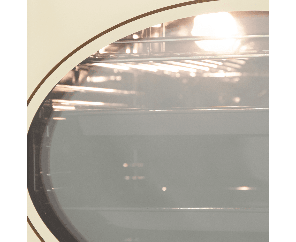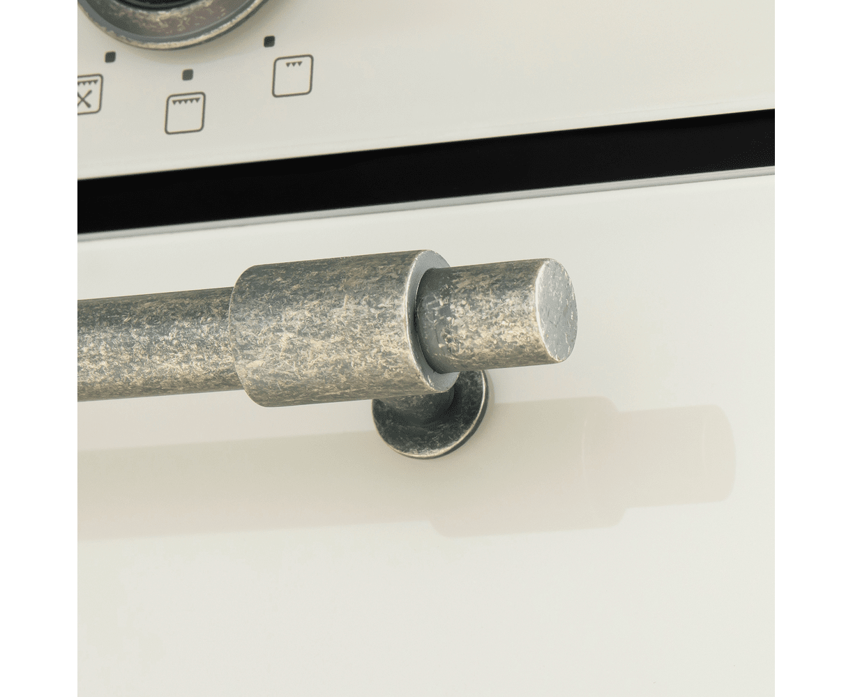 Фронтальная панель духовки сделана из высококачественного жаропрочного стекла цвета слоновой кости, окрашенного по всему объему, что является отличительной чертой бытового прибора премиум-класса. Цельнометаллическая фурнитура цвета античного серебра, выполненная в рустикальном стиле, идеально дополняет общий образ.