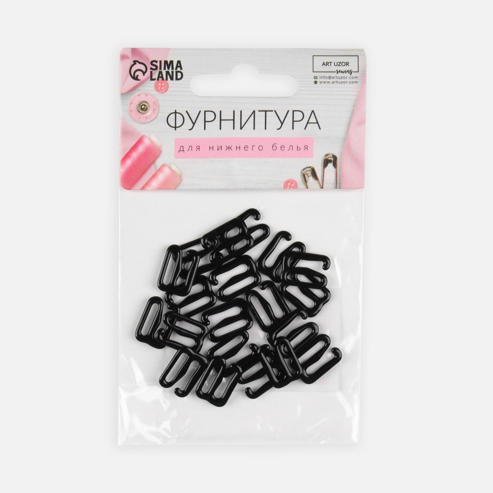 Крючок для бретелей, металлический, 10 мм, 20 шт, цвет чёрный